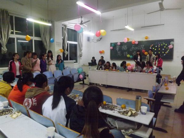 (本网讯 辛甜甜)10月22日晚,名贵园志愿服务队在人文楼306教室喜庆展开展幸福family”茶话会,2011和2012级主要成员与2013级新成员欢聚一堂,共度良宵。