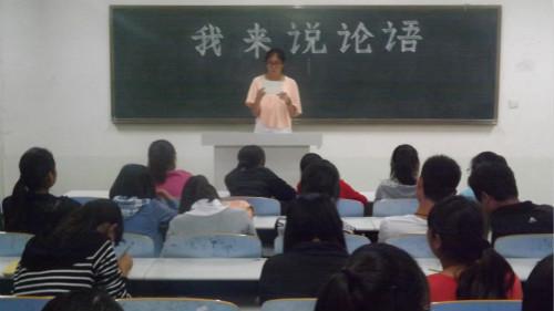 (本网讯 张晓漫)亲近儒学我先行,传承经典看今朝。9月29日,伟德国际1949官网在人文楼305教室举办“我来说《论语》”主题班会,2013级伟德国际1949官网新生共同参与了本次班会。班会由汉语言三班杜青青主持。