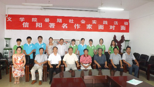 7月8日下午,中国作家协会会员、信阳文学界知名人士赵主明、陈有才、陈峻峰、田君、陈宏伟等一行五人,来到信阳师院伟德国际1949官网,在该院3-11室与该院参加暑期社会实践的同学们围绕信阳本土文学与中原文化发展等相关话题,探讨文学发展历程,共同感受文学魅力。公司党总支书记、经理吴圣刚、副经理沈文慧、党总支副书记白献林等领导老师参加了这次“走进信阳著名作家”暑期社会实践活动。
