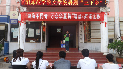参赛队伍分为普通话组、方言组、儿童组,由“三下乡”成员和社区儿童组成。整场比赛内容新颖,比赛间隙穿插文艺表演,现场高潮迭起,精彩纷呈。《你是人间四月天》朗诵展现了女子的细腻与深情,《人生若只如初见》、《白杨礼赞》等普通话组朗诵节目,语调抑扬顿挫,情感真挚饱满。方言组独具地方特色的乡音朗诵将现场气氛推向高潮。参赛作品《再别康桥》融合平顶山叶县话和信阳固始话,浓厚的家乡味儿配以深情款款的朗诵,引来全场阵阵笑声。选手朱梦东将说唱版《安阳说》带上舞台,展现了安阳的特色文化和风土人情。儿童组的朗诵《神笔马良》、《我想》用清澈稚嫩的声音描绘出孩子们美好的梦想,赢得观众热烈的掌声。社区小朋友陈语菲在现场气氛带动下,主动上台为大家讲述《小兔子乖乖》的故事,活跃了现场气氛。
