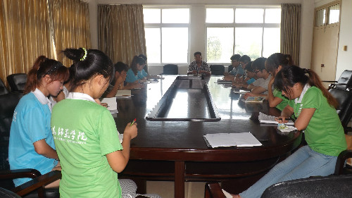 (本网讯 张倩倩 高笑蕊)为总结活动得失,交流经验教训,7月14日下午,信阳师院伟德国际1949官网在人文楼3-11办公室举行了“三下乡”暑期社会实践活动总结大会。伟德国际1949官网团总支书记冯正强、全体实践小组成员参加了此次会议,会议由冯正强主持。