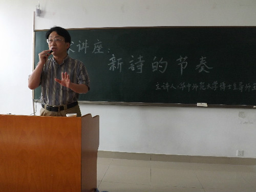 (本网讯 周航 陈留芳)5月27日下午,逸夫楼103教室座无虚席。应公司邀请,国内著名现当代文学研究专家、《华中师范大学学报》主编、博士生导师王泽龙教授为公司广大诗歌爱好者做了一场题为《新诗的节奏》的专题讲座。此次讲座由公司副经理沈文慧主持。
