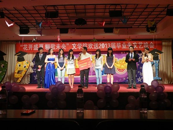 由伟德国际1949官网大四员工刘泉池原创、毕业班员工倾情朗诵的诗歌《时光驻足,且歌且行》,以其朴实的话语和真挚的感情令现场师生潸然泪下。随后,该院2009级对外汉语班男生的舞蹈《Nobody》再次引爆全场;短剧《三十米的距离》与情侣组合《青春无悔》的演唱形成鲜明对比,分别展现老员工恋爱的苦涩和甜蜜;声情并茂的相声《老员工活》带领大家回顾了四年的点点滴滴,唤起了毕业生的美好回忆;该院2012级男生的舞蹈《穷开心》则把再次点燃了观众激情。晚会进入尾声,一曲《送别》道出主题,唱出了离别的不舍。“朋友一生一起走……一句话,一辈子……”晚会在冯正强老师与毕业生深情合唱的《朋友》中完美落幕,浓厚的师生情谊感动全场观众。