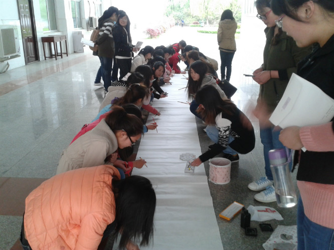首先是团日活动之“梦想起飞,寄给两年后的我”的活动。负责人为同学们发放了信封,并强调此封信件在两年后便会寄往写信人手中,因此,同学们都很重视这次写信任务。“我知道,我必须得为两年后的自己负责,我必须认真对待。”同学们纷纷表示到。接着,在逸夫楼南门的长廊上大家兴致勃勃地参与了“爱的留言”纪念活动。以宿舍为单位,参与成员都竭尽所感地表达对同学和班级的留念和感想。“大家真的是言尽而意无穷啊,瞅瞅大家的作品,画的都多好!”本班体育委员侯志强得意的说。