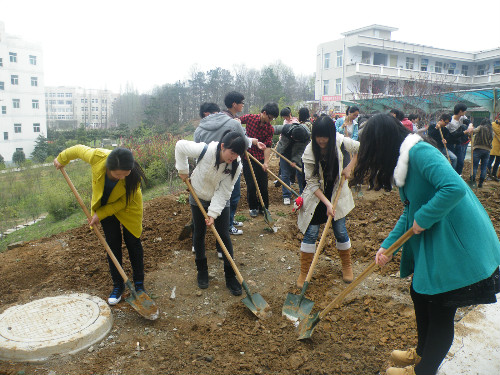 学员们一经小组长安排,立刻拿着铁锹热火朝天地干了起来。他们发扬着“不怕苦、不怕累、不怕脏”的精神,本着团结协作的原则,拿着铁锹挥汗如雨、认真仔细地先将荒地上的乱石清理干净,然后用铁锹将泥土翻起,后又将杂草连根铲起,再仔细敲碎土块。尽管他们的动作或许不够娴熟,但是,脸上透露出的那份认真和专注让人敬佩。大家分工明确,尽管学员们都大汗淋漓,但他们依然表现出了很大的热情,认为这次活动很有意义。经过一个小时左右的清扫之后,9号宿舍楼下的土地焕然一新,萌发出了初春的清新之感。
