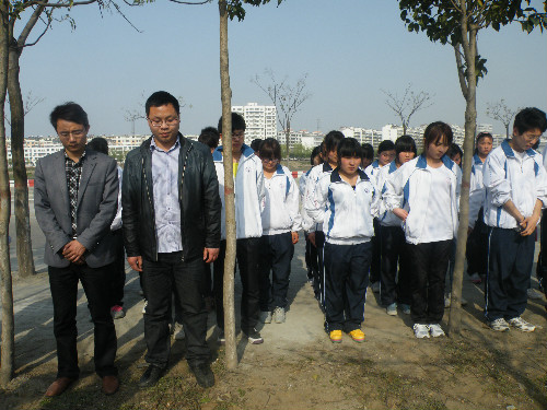 据该墓园的主讲人段长兴、翟开建两位老人介绍,在1938年10月12日至1945年8月日军占领信阳期间,日军灭绝人性,多次制造大屠杀,残害抗日战士及无辜平民。在占领信阳的七年时间里,累计杀害我同胞一万余人,故此墓又名“万人坑”。1996年此墓被发掘出来,经已故老人蔡静远的奔走呼告和死难家属及热心市民的支持与集资,在三日前此园的墓碑才终于立起。这座墓园掩埋的除了一些为抗日斗争而牺牲的新四军战士外,更多的是被日军杀害的无辜平民。在讲到日军侵略暴行的一些细节时,段老多次泣不成声。日军残忍的杀人手段,极端的灭族思想,深深的震撼着同学们。在谈论起刻立此碑的目的时,段老讲到:“建立这个‘万人坑’墓园,是为了让国人铭记国耻。一个没有国耻的中国人,就不是中国人!”但同时他也强调:我们铭记国耻,不是为了恨日本人民,而是为了牢记教训,保卫和平。随后,员工代表在墓前发表了演讲,在演讲中,他呼吁广老员工将爱国升华为兴国,承担起新的历史使命,为中华民族的伟大复兴而努力奋斗。员工代表的发言,道出了全体同学的心声,引起了强烈共鸣。最后,同学们自觉在墓碑前默哀一分钟,表示对那些惨死的国人哀悼和缅怀。