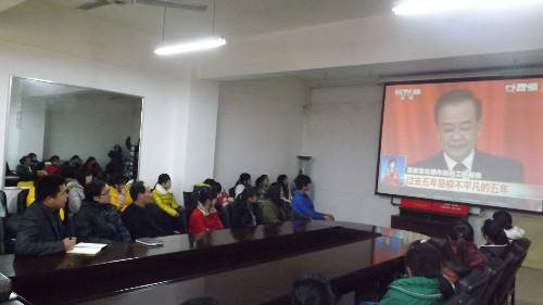 在中国可谓“两会时间”的又一重要时刻,最令人关注的是国务院总理温家宝第十次在开幕式上作《政府工作报告》,这也是本届政府最后一次的工作报告。温总理在回顾过去五年取得的辉煌成就时,还对今年经济社会发展做出展望,制定目标并部署了相关工作。报告涉及国计民生的基层医疗服务体系建设、人口和计划生育工作、应对国际金融风险、扩大居民就业、增加居民收入以及房价调控等关乎老百姓生活的方方面面。整篇报告气势宏伟,令人振奋,也使师生感受到了国家政策的温暖和强大。