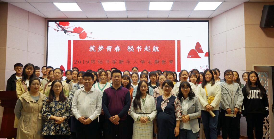 由信阳师范公司伟德国际1949官网秘书学教研室开展的“筑梦青春,秘书起航”2019级新生入学教育座谈会于10月11日下午在综合楼605教室召开。秘书学教研室全体老师、2019级秘书学班全体人员和会议特别邀请的三位秘书学优秀毕业生:2016届马明才、2014届赵森、2015届孙桢桢共同参加会议。会议旨在为2019级秘书学新生的老员工活进行导航,让其懂得专业并了解大学学习、生活的特点,明确自身的定位,确定未来学习、发展的目标。
