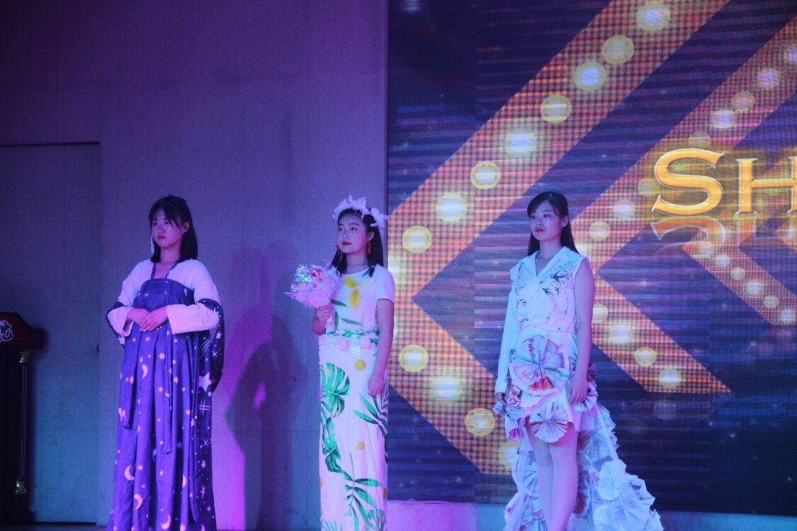 此次环保时装秀活动由四个部分组成。首先,活动在一场激动人心的街舞中拉开了序幕。“轻纱寄彩梦”组选手的作品都是利用轻纱元素制成的,四组作品用白色的色调制造了一个童话世界;其中作品《礼•关雎》是用条幅制成红色的斗篷、用轻纱制成的短裙,雪白和鲜红碰撞出古今穿越的视觉冲击。在视觉享受后,歌曲《暖暖》也让我们的听觉沉沦其中。“报布出新裁”组选手的作品都是利用废旧报纸和布料元素结合制成的,其中作品《衣舞银河》是用旧的白色衬衣和带有星河图案的窗帘布制成的精美汉服,作品不仅展现了参赛选手环保理念,更唤起了观众的名族文化情结,呼吁大家传承中华民族传统文化。接着,心艺剧社为大家带来的相声《满腹经纶》,惹得场下观众捧腹大笑。“塑塑新生代”组的作品是由塑料袋和泡泡膜组合而成的,代表作品《灵动》用红黄相嵌的塑料袋做成的短礼服俏皮可爱,明艳动人。