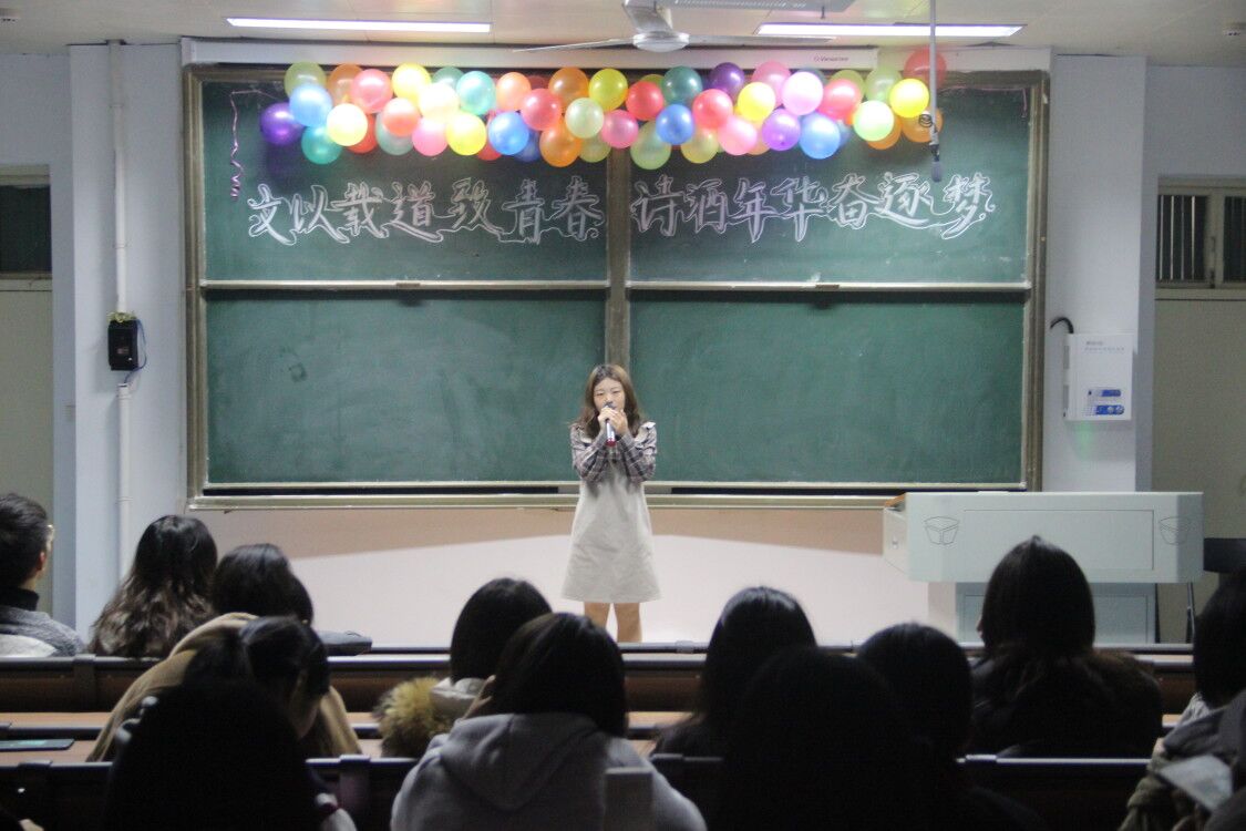 本次汇演以“文以载道致青春,诗酒年华奋逐梦”为主题,用音乐、舞蹈、朗诵、小品等表现形式,为大家展示一场文艺盛宴。节奏十足的开场舞迅速吸引观众的注意力,点燃全场的氛围,诠释青春的激情和张扬。优美动听的歌曲《我的秘密》、《山外小楼夜听雨》、《牵丝戏》、《独家记忆》余音绕梁,柔情含蓄,使得现场观众沉浸在听觉享受之中;激情澎湃的朗诵《祖国颂》激励青年员工将个人梦想与中国梦紧紧相连,歌颂青春与祖国同在;相声《你可真优秀啊》使得观众在一捧一逗中笑声不绝,掌声不断;手语舞《国家》以无声的方式展现当代老员工对国家的深深的眷恋;校园诚信短剧引发同学们对于诚信的思考;最后精彩绝伦的歌伴舞《天耀中华》,表达了对祖国母亲最真挚的祝福。