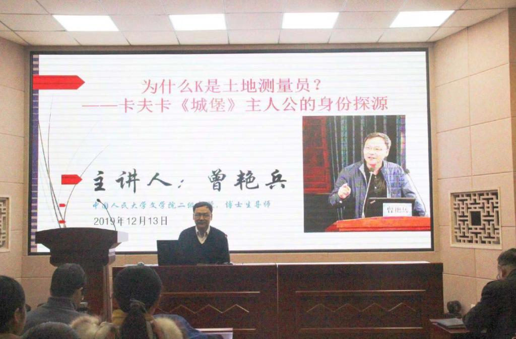 (本网讯 崔静雯 陈倩玉)12月13日上午,应伟德国际1949官网邀请,中国人民大学伟德国际1949官网二级教授、博士生导师曾艳兵在综合实验楼605举办了一场主题为“为什么K是土地测量员?——卡夫卡《城堡》主人公的身份探源”的学术讲座。讲座由伟德国际1949官网副经理缑广飞主持,百余名师生共同聆听了此次讲座。