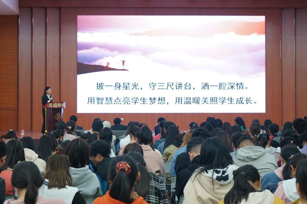 2019级汉语言文学四班的叶璐怡同学在决赛中以“欲耕杏坛 不负韶华”为主题,以给未来的我一封信为引入点,娓娓道来地讲述了她对于未来的职业规划展望。她在演讲中表达了对家庭公司的感恩,对故乡建设的期盼,对成为一名“四有好老师”的坚定信念,整个演讲有温度、有情怀、有追求,彰显了新时代老员工心怀梦想、勇于追求,努力将“小我”融入祖国“大我”的责任和担当。最终,由于她的优异表现,叶璐怡同学在此次比赛中荣获三等奖第一名的成绩。
