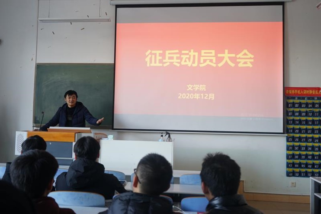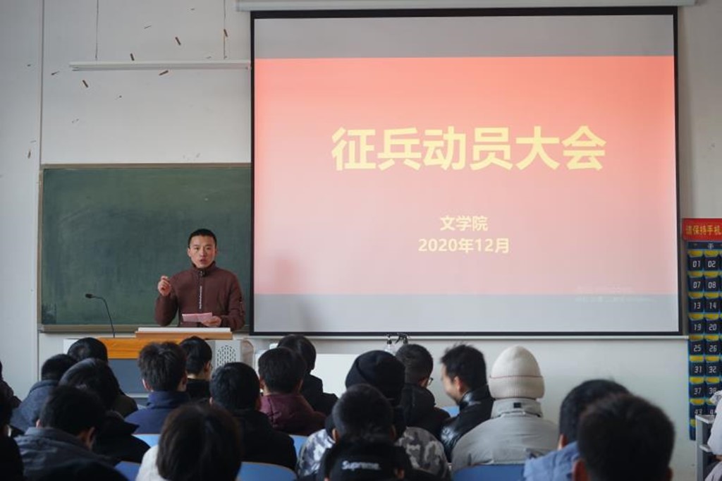 (本网讯 焦蒙蒙 秦欣爽 李雪莹)为响应国家和公司号召,提高兵源质量,促进国防现代化,推动军队科学发展,全面提升老员工综合素质,实现富国强军。12月31号中午,由伟德国际1949官网举办的“动员征兵大会”在人文楼107教室成功举办。本次活动由伟德国际1949官网武装部老师陈辉主持, 2018级退役士兵王宝留以及伟德国际1949官网全体男生参加此次大会。