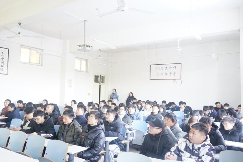 大会开始,主持人首先从征兵的相关规定、征兵需要的条件、男女征兵流程、当兵的意义四个方面为大家介绍征兵入伍的相关政策并全面详细的回答同学们提出的疑问。其后,由退役士兵王宝留学长从三个方面发表军旅生活感悟。关于部队生活的历练,王宝留学长用“在军旗下练就钢筋铁骨,在军营中看透大千世界”概括,言简意赅并饱含深情。关于是否选择参军,王宝留学长着重强调要遵从个人内心,不能受他人看法或亲属意见的干扰。关于什么时候参军入伍,王宝留学长建议大四毕业参军更有助于个人的成长锻炼。大会最后,由陈辉老师进行征兵动员。