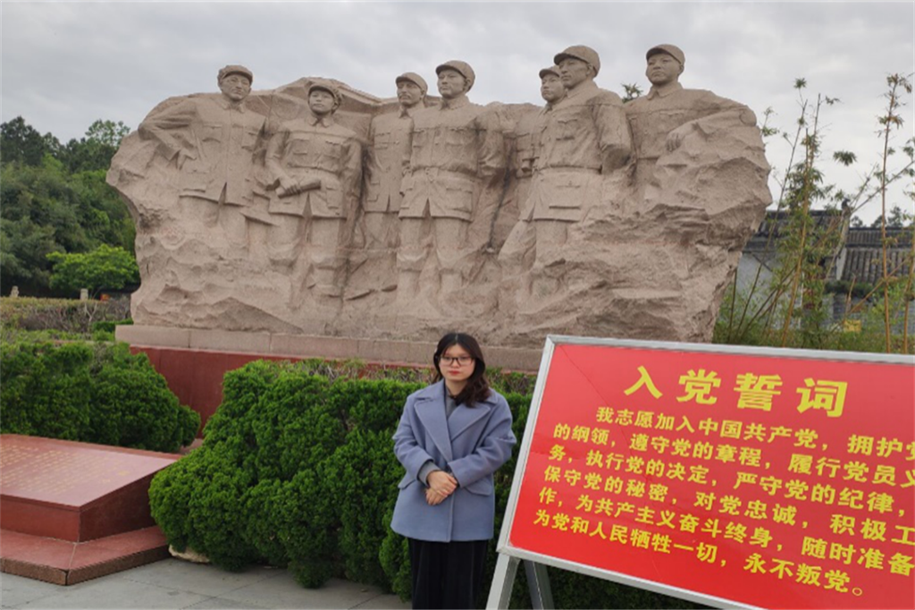 第五站,党员徐钰琪利用五一假期参观了红二十五军长征出发地何家冲。通过此次“红色之旅”,她表示“我汲取到了党的精神,我会运用到今后的工作和学习当中,以实际行动,继承先烈遗志,努力工作,不断创新,充分发挥共产党员的先锋模范作用。以新的气象、新的作为、新的成效,奋写新时代,书写新篇章,弘扬红色精神,走好新时代的长征路!”
