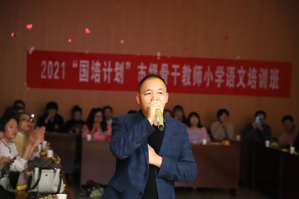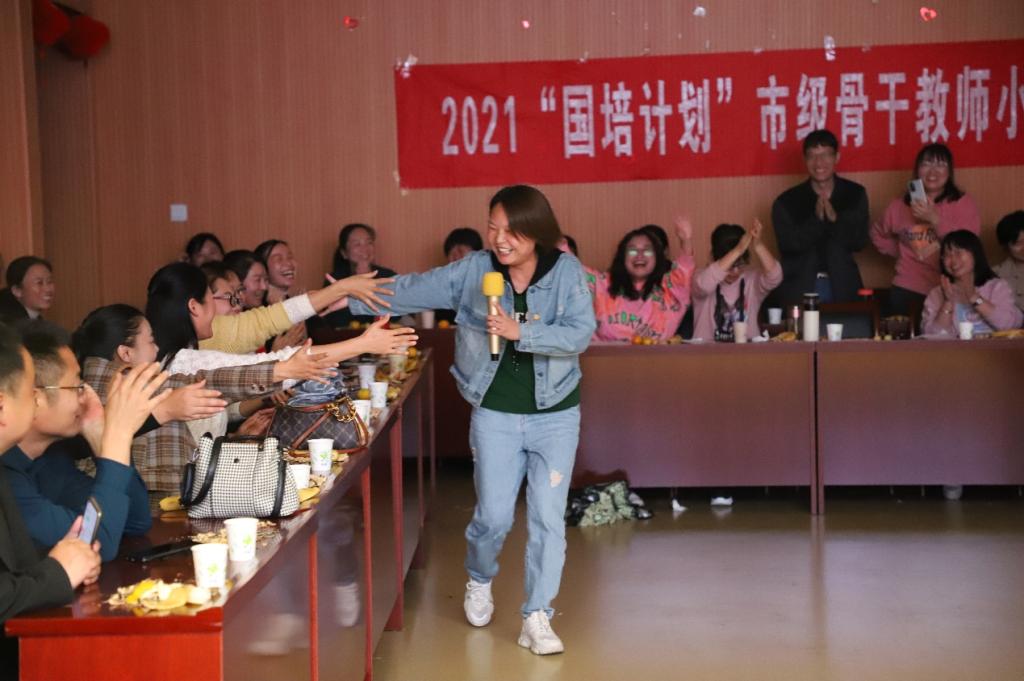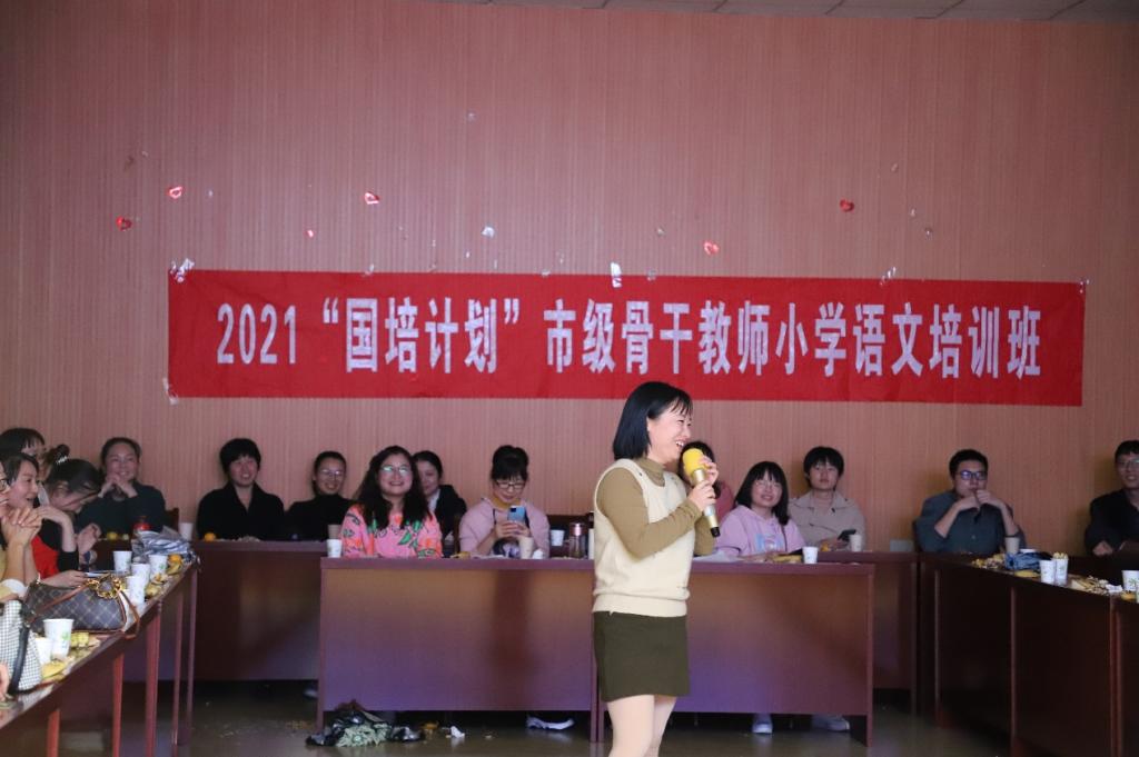 10月15日晚,“国培计划”市级骨干教师提升培训项目小学语文班文娱晚会在综合楼605顺利举行。晚会由朱敏霞老师主持,培训学员及员工助理欢聚一堂,共同参与并观看此次晚会。