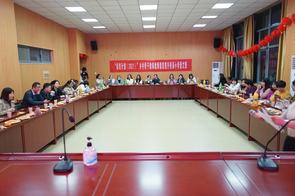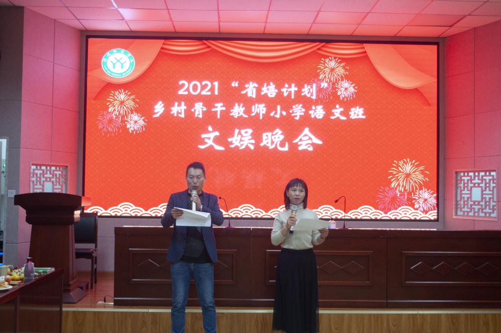 10月21日晚19时,“省培计划”小学语文乡村骨干教师文娱晚会在综合楼605顺利举行。晚会由萧晟洁老师主持,培训学员及员工助理欢聚一堂,共同参与并观看此次晚会。
