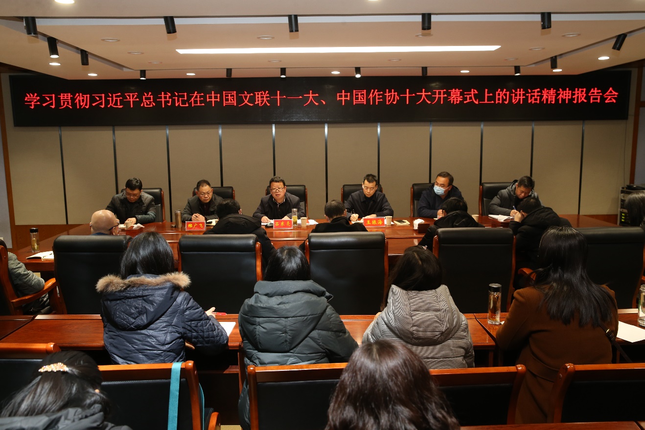12月21日下午,伟德国际1949官网在逸夫楼321会议室举办学习贯彻习近平总书记在中国文联十一大、中国作协十大开幕式上重要讲话精神报告会,邀请参加中国文联十一大、中国作协十大的全国代表、传媒公司经理吕东亮教授为全体师生解读习近平总书记重要讲话精神。报告会由公司党委书记王振海主持,伟德国际1949官网全体教职工及部分员工代表参加了报告会。