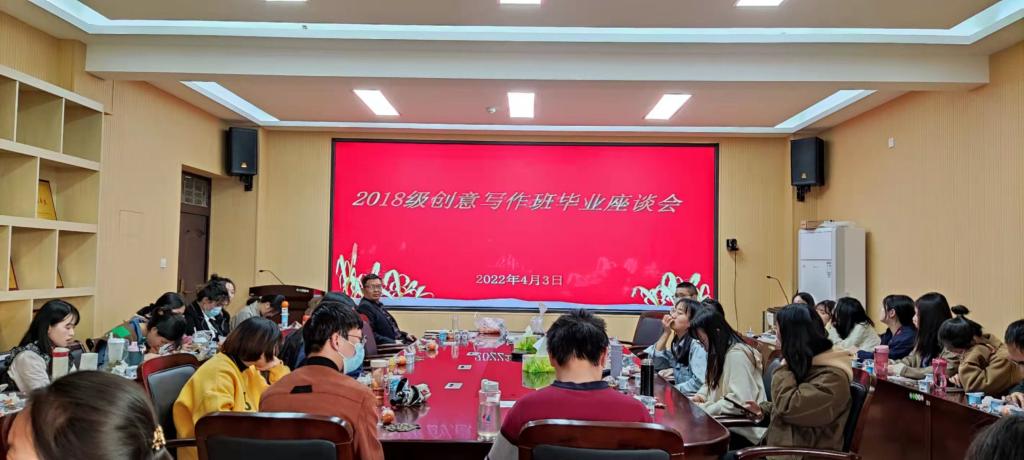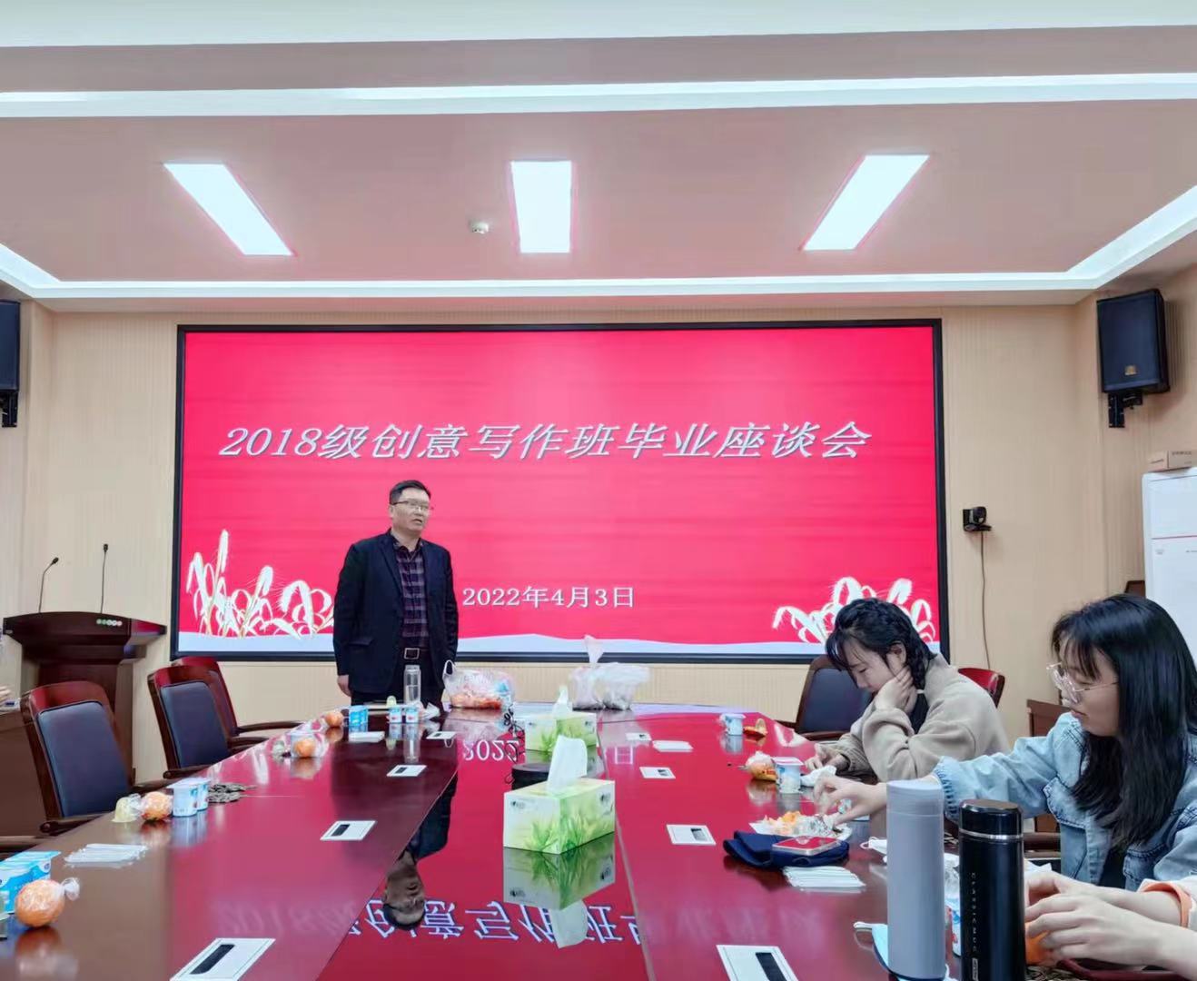 4月3日下午,2018级创意写作班班级毕业座谈会在人文楼3楼会议室顺利举行。座谈会由班主任徐洪军老师主持,全体员工参加此次座谈会。