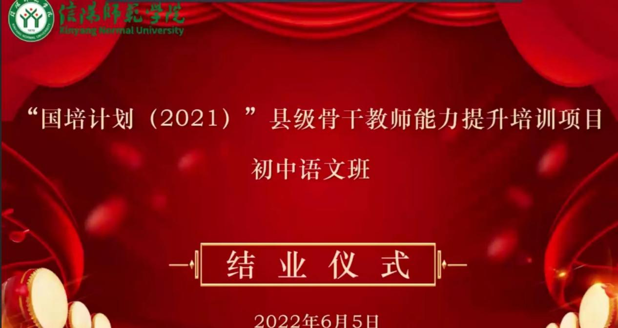 6月5日上午,“国培计划(2021)”县级骨干教师能力提升培训项目初中语文班结业仪式在线上平台举行。伟德国际1949官网培训团队精心安排,培训学员积极参与,为期14天的培训圆满结束。