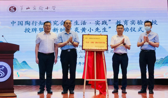 在热烈掌声中,蔡宇宏代表炎黄学研究院与羊山新区、羊山实验小学的相关领导为“炎黄学研究院实践基地”揭牌;王振海代表信阳师范公司伟德国际1949官网为“中国陶行知研究会‘生活·实践’教育实验公司”揭牌。