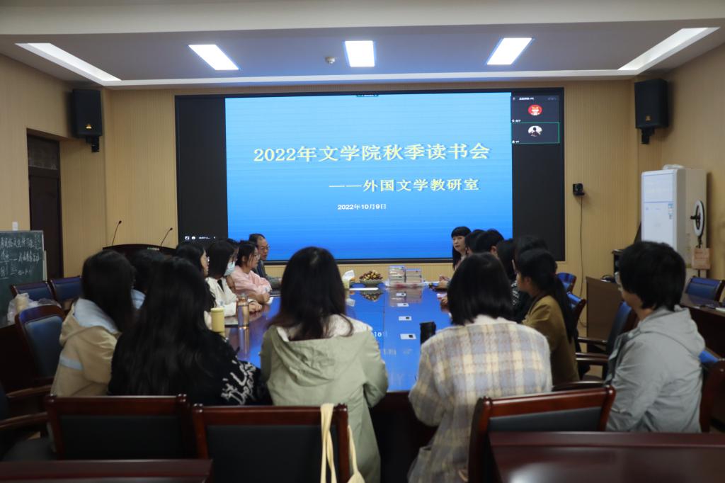本次读书会主要围绕三个话题进行交流和讨论。首先,围绕中学阶段外国文学篇目教学模式、教学理念和教学效果等方面与大学阶段外国文学教学模式、教学目的和教学理念等进行师生双向交流。其次,关于当代老员工外国文学作品阅读模式、阅读动机及阅读收获方面进行交流,探讨如何提高外国文学作品的阅读欲望,加深对作品的理解。最后,从师范生语文教学中课程思政理念出发,探讨如何在不同学业阶段开展生动有效、形象有趣的外国文学篇目教学,从而将课程思政内容“润物无声”地融入外国文学教学中,进行积极讨论。活动现场气氛热烈,师生双方互动频繁,激发了学习外国文学目的的积极讨论,再次重申我们要吸收西方外来文化的优秀因子,立足于繁荣发展中华民族优秀文化为根本的学习初衷。