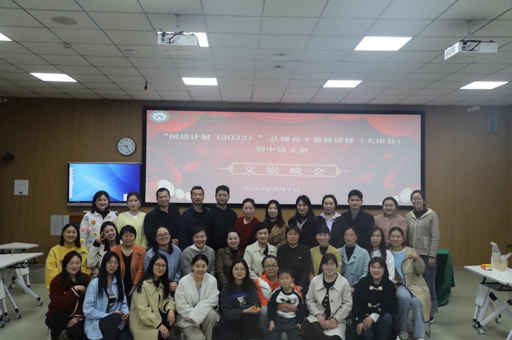 3月7日晚,“国培计划(2022)”太康县项目县级骨干教师初中语文研修班文娱晚会在社科楼120室顺利举行。晚会由文娱委员王子路主持,培训学员、班主任及员工助理欢聚一堂,共同参与并观看此次晚会。