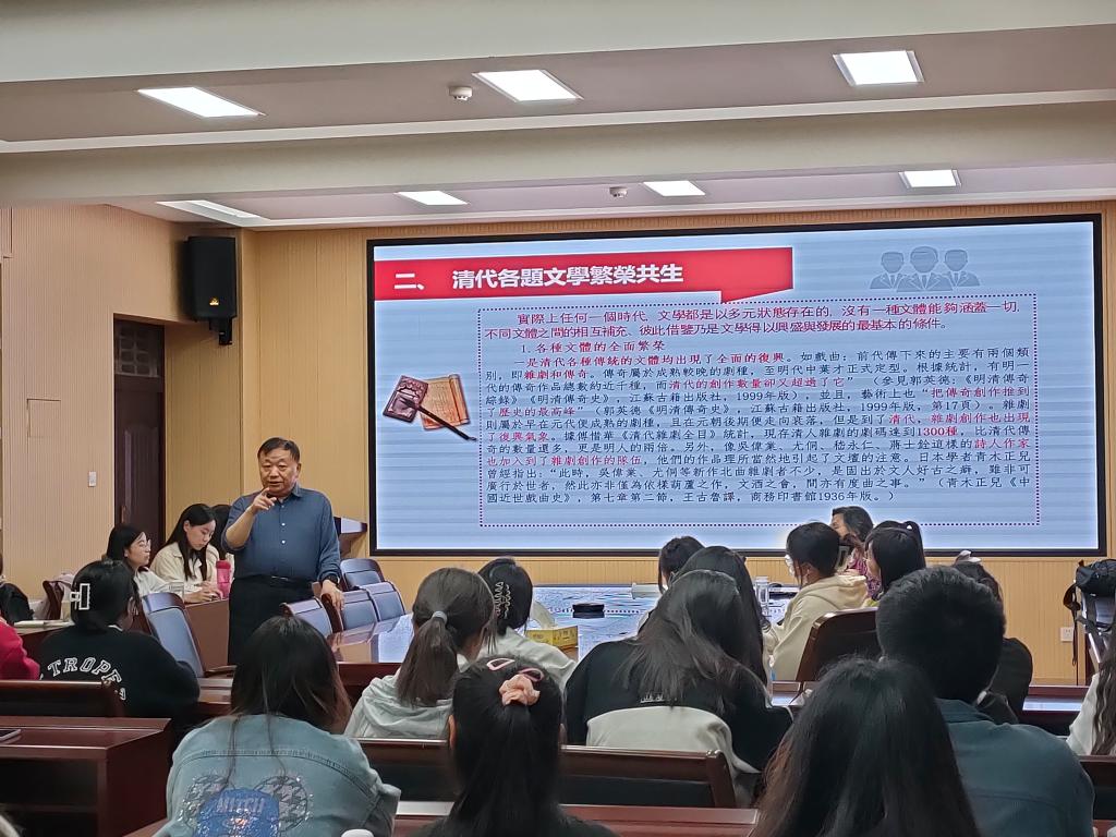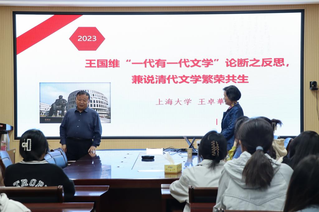 5月21日晚,应伟德国际1949官网邀请,原广西玉林师范公司董事长、博士生导师、上海大学伟长学者王卓华教授在人文楼三楼会议室为公司师生进行了题为《王国维“一代有一代文学”论断反思,兼说清代文学的繁荣共生》的学术讲座。本次讲座由江中云教授主持,伟德国际1949官网部分师生参与。