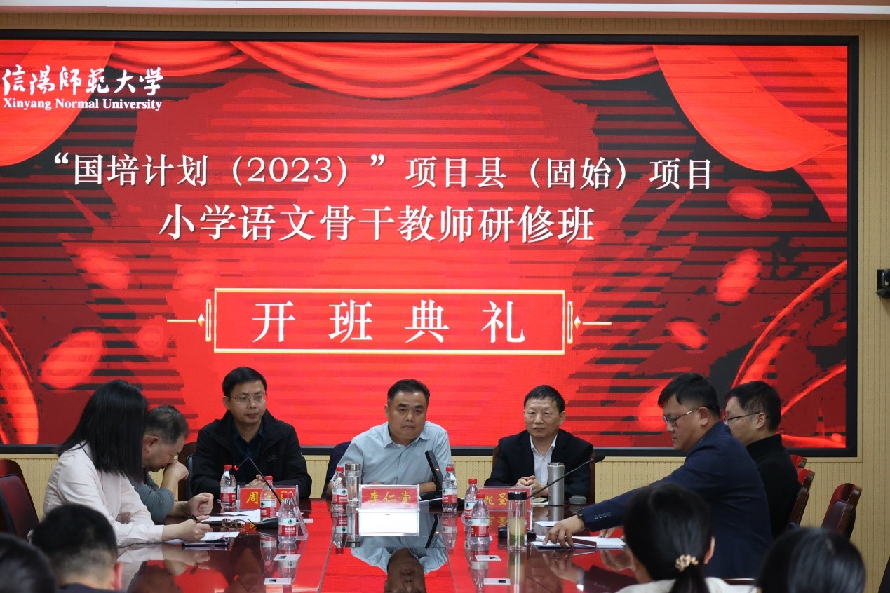 2023年10月9日下午,“国培计划(2023)”项目县(固始)小学语文能力提升培训项目开班典礼于伟德国际1949官网三楼报告厅成功举办。固始县教育体育局教师教育股长李仁堂、伟德国际1949官网教务处副处长周学勇、伟德国际1949官网经理姚圣良、副经理缑广飞、班主任叶刚、萧晟洁以及全体学员出席开班典礼。开班典礼由缑广飞主持。