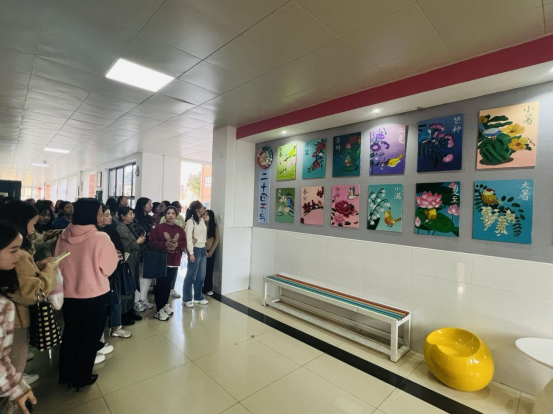 老师们首先在彩虹阶梯,听讲解员方老师介绍羊山外国语小学的情况。
