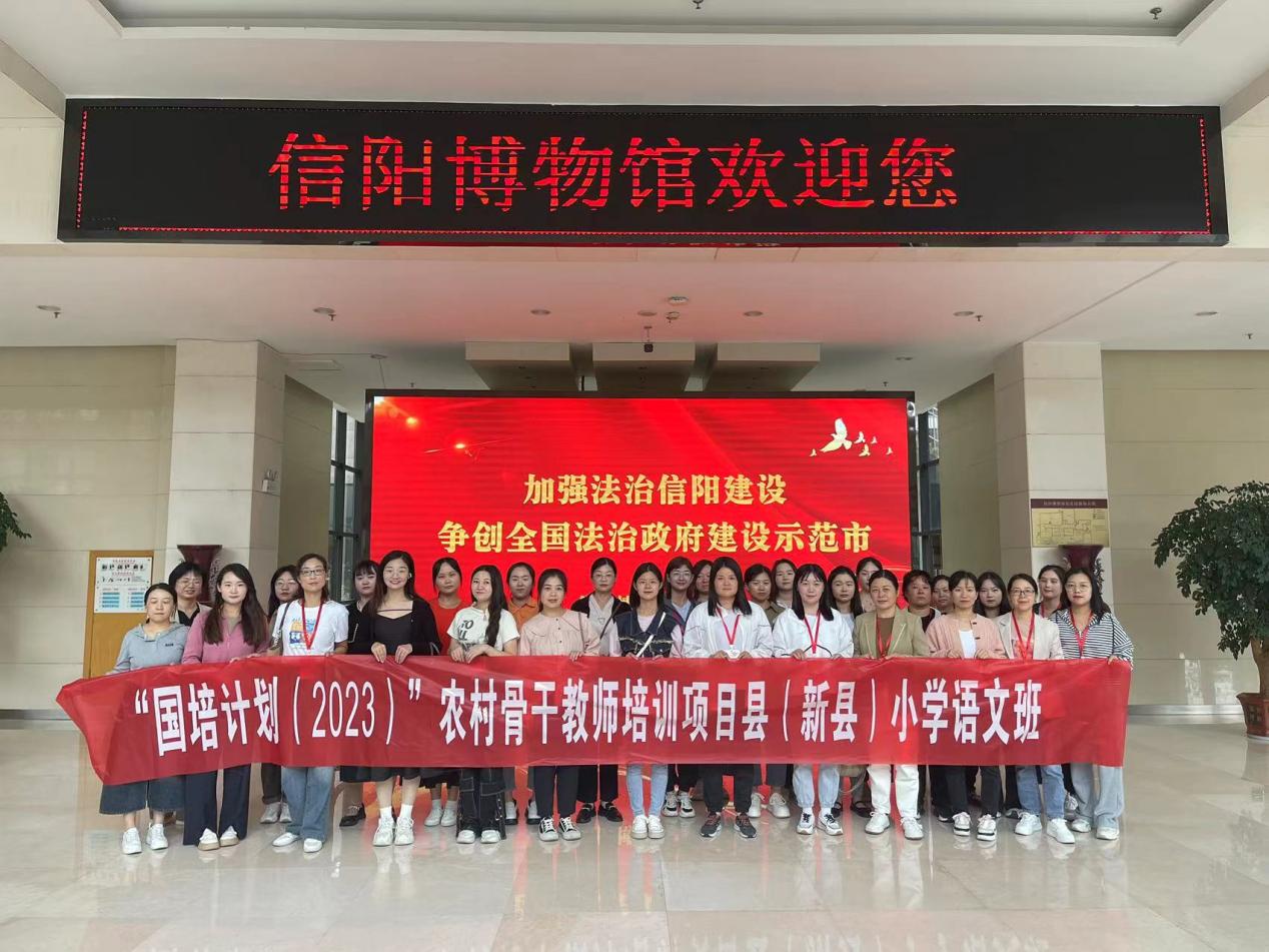 9月22日下午,“国培计划(2023)”县级骨干教师小学语文研修班学员在班主任张姝的带领下,前往信阳市博物馆参观。