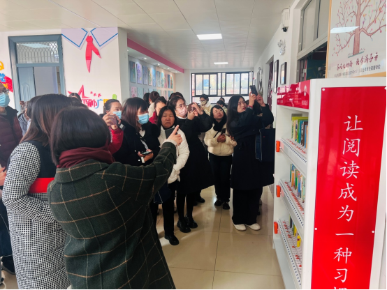在听取羊山外国语小学课堂教数学后,在公司领导的带领下,研修班的老师继续参观了员工们的社团活动空间,感受羊山外国语小学员工兴趣爱好培养氛围。随后,研修班学员与教师来到会议室听取教师代表带来的说课展示。