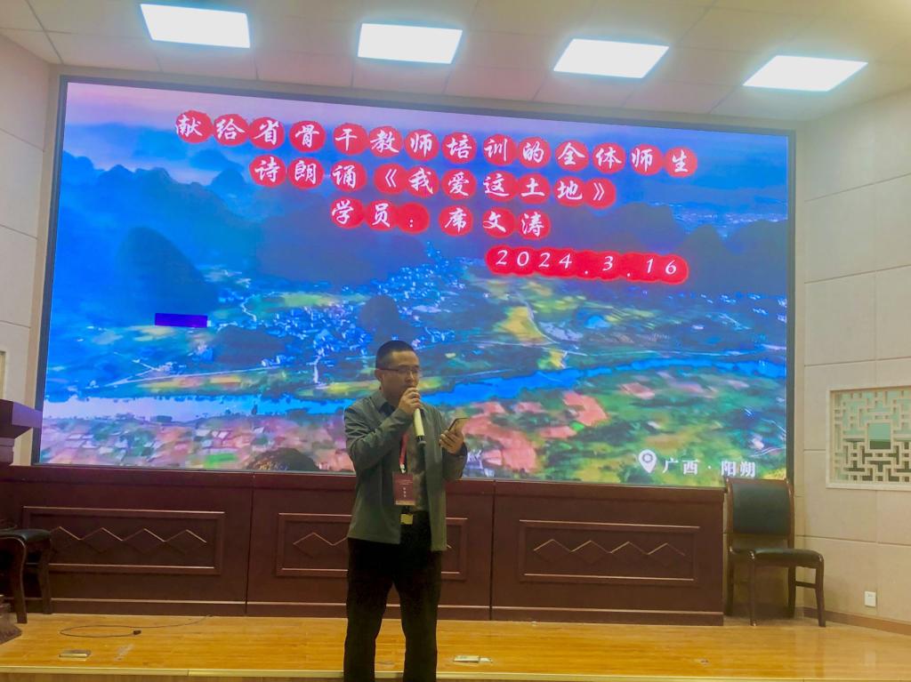 3月16日,“省培计划 (2023)”义务教育团队薄弱环节改善暨中小学教师素质提升工程省级骨干教师培育项目初中语文班文娱晚会在综合楼605教室顺利举行。晚会由班长殷传军和文娱委员杨松老师主持,培训学员、班主任和员工助理共同参与本场晚会。
