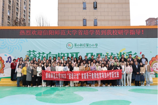 2024年4月7日上午,“省培计划(2023)”骨干教师小学语文班的学员在伟德国际1949官网刘宁老师的带领下,来到信阳市羊山新区第二小学进行观摩学习,受到了第二小学副董事长方媛媛等人的热烈欢迎。