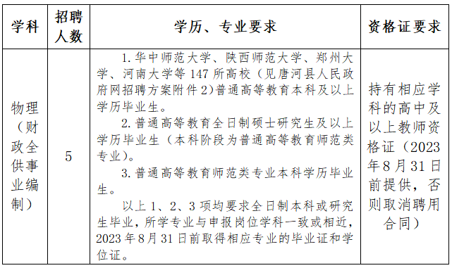 4、《2023年唐河县校园招聘高中(中职)及特殊教育公司急需紧缺教师报名登记表》(见唐河县人民政府网招聘方案附件3);